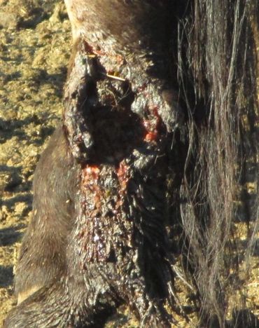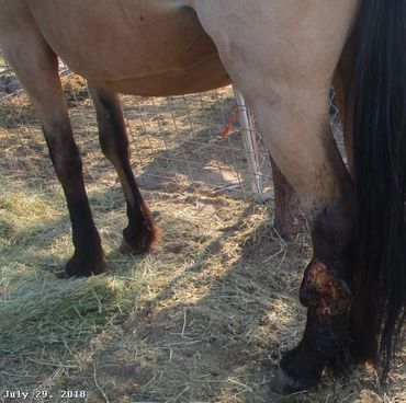 It took many months, Whiskey can run and shows no signs she was injured, other than some proud flesh and a scar. No tendons or muscles show any damage. She may never have a beautiful leg, but she is a beautiful horse, strong and a will to survive!